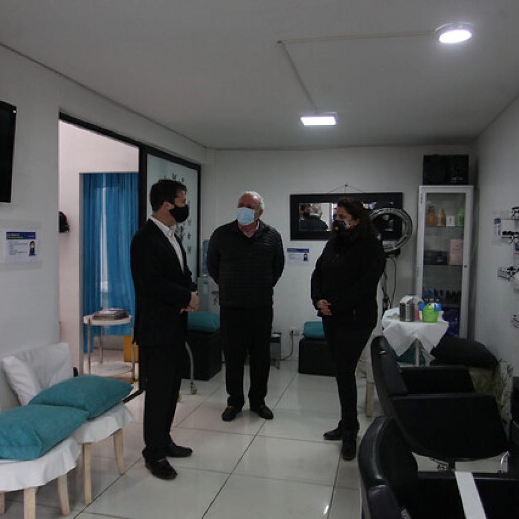 Las autoridades hicieron entrega de un kit de sanitización a Pamela Henríquez, emprendedora que está implementando medidas sanitarias como la reducción de la capacidad de su local, la instalación de dispensadores de alcohol gel y la demarcación de distancia física en su peluquería Carité’s.